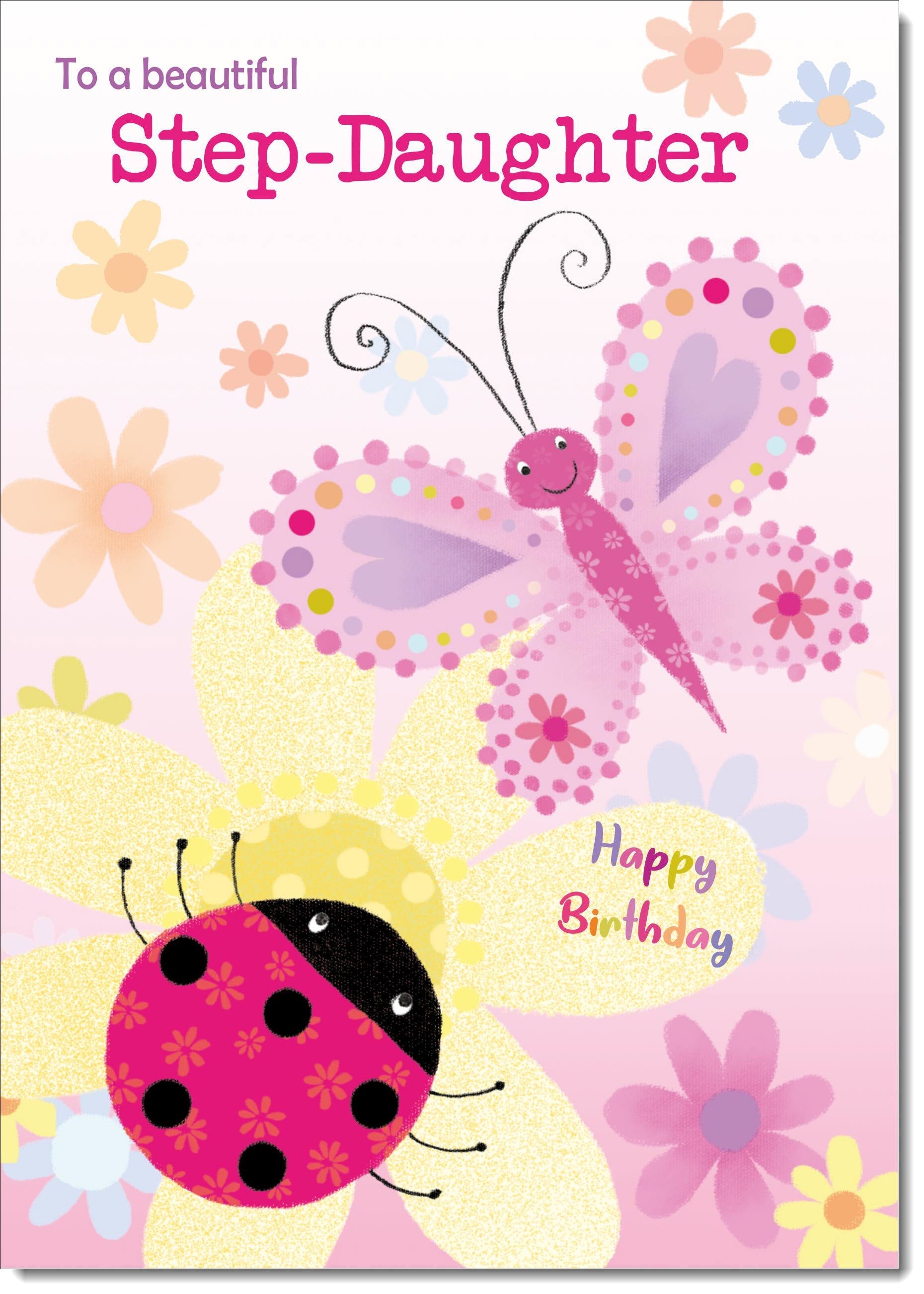 Stepdaughter Birthday Card Ladybird and Butterfly