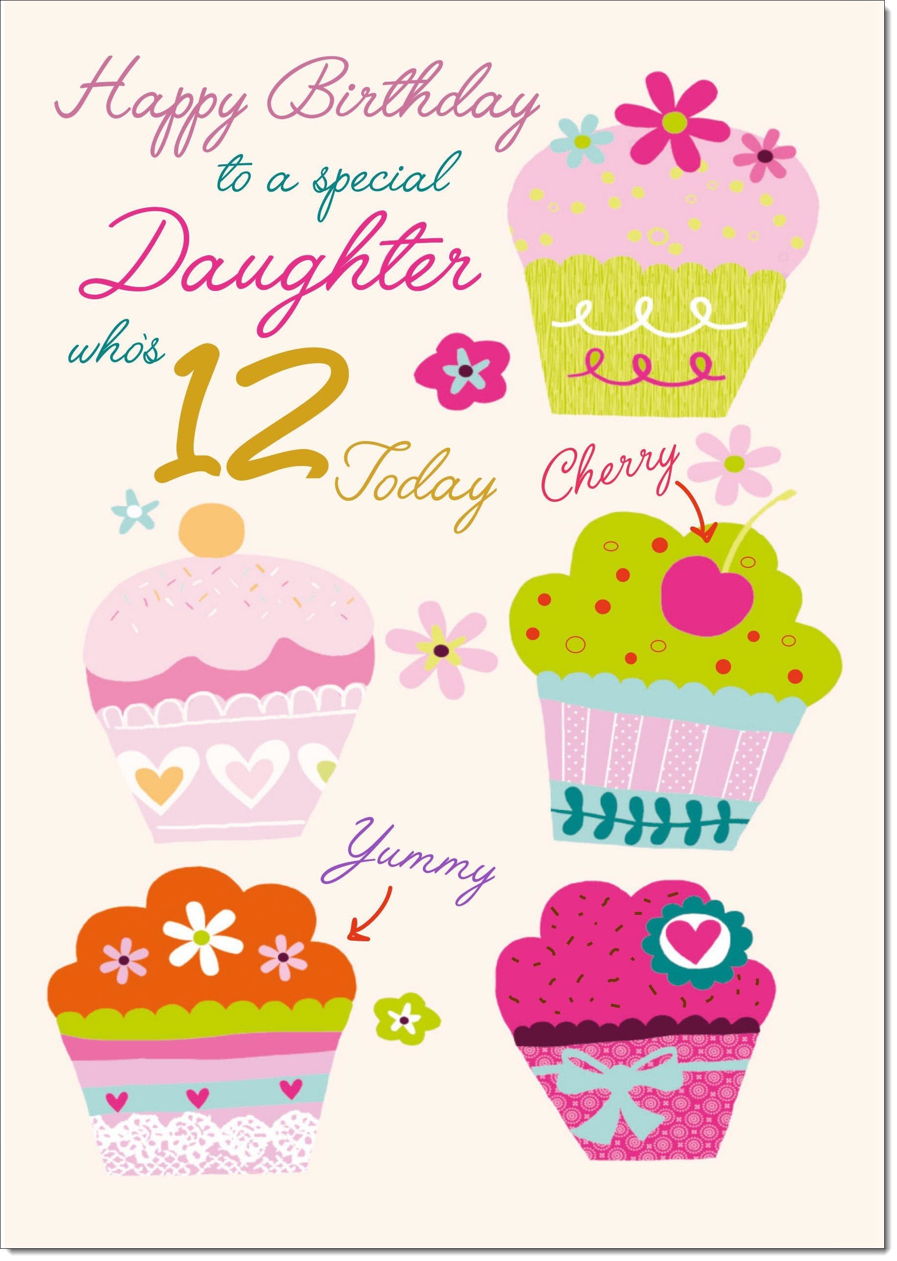 Daughter 12th Birthday Card Age 12 Bright Cupcakes