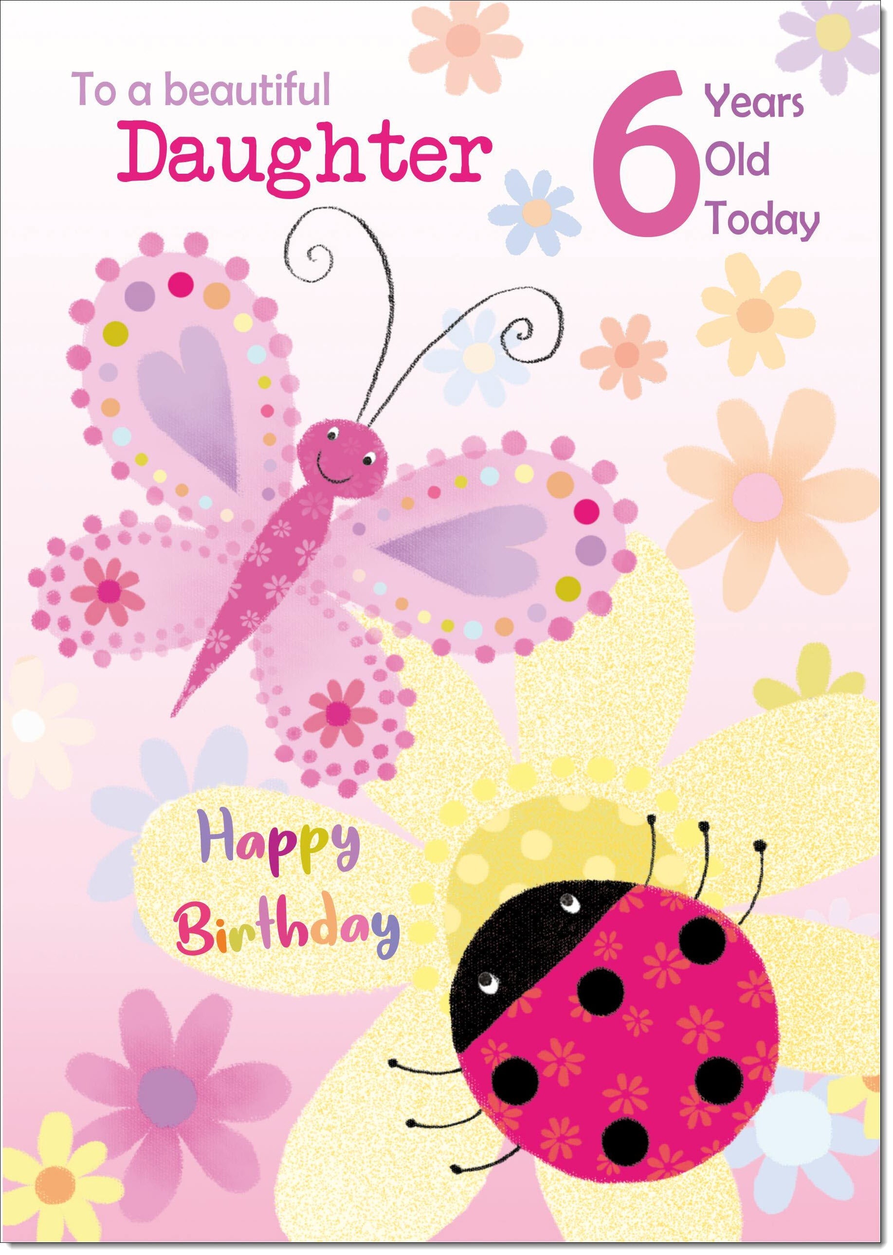 Daughter 6th Birthday Card Age 6 Ladybird and Butterfly