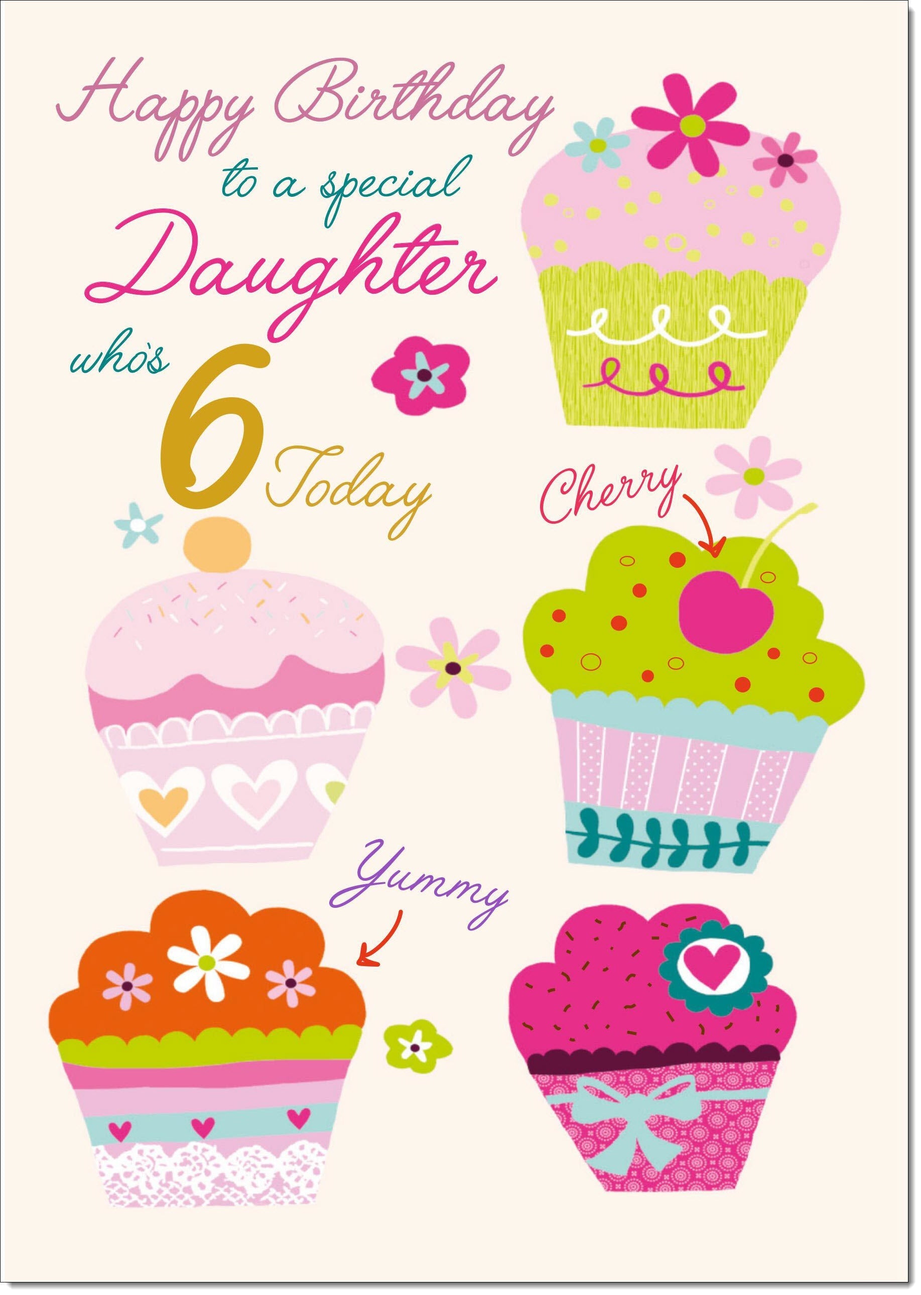 Daughter 6th Birthday Card Age 6 Bright Cupcakes