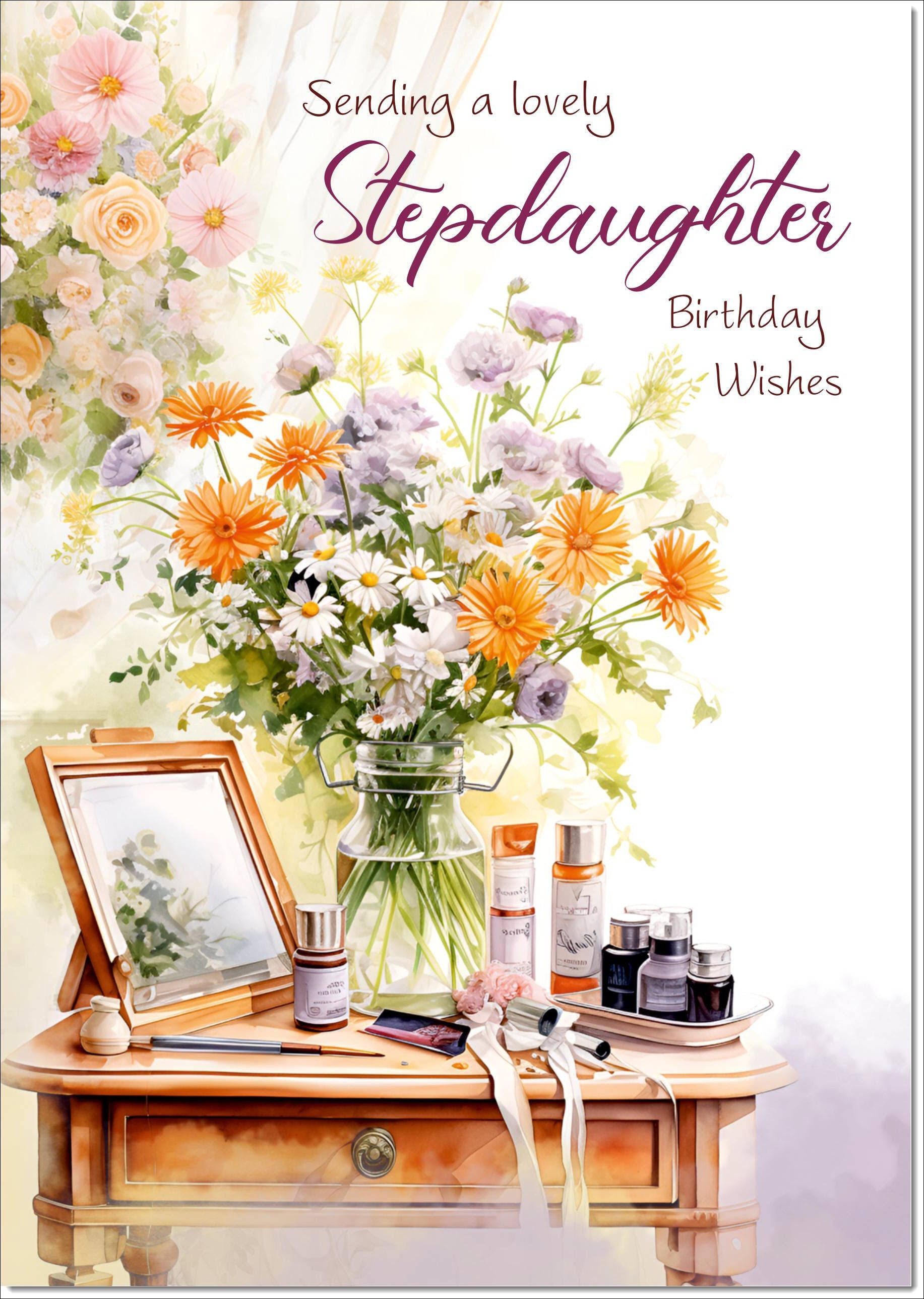 Stepdaughter Birthday Card Dressing Table Bouquet