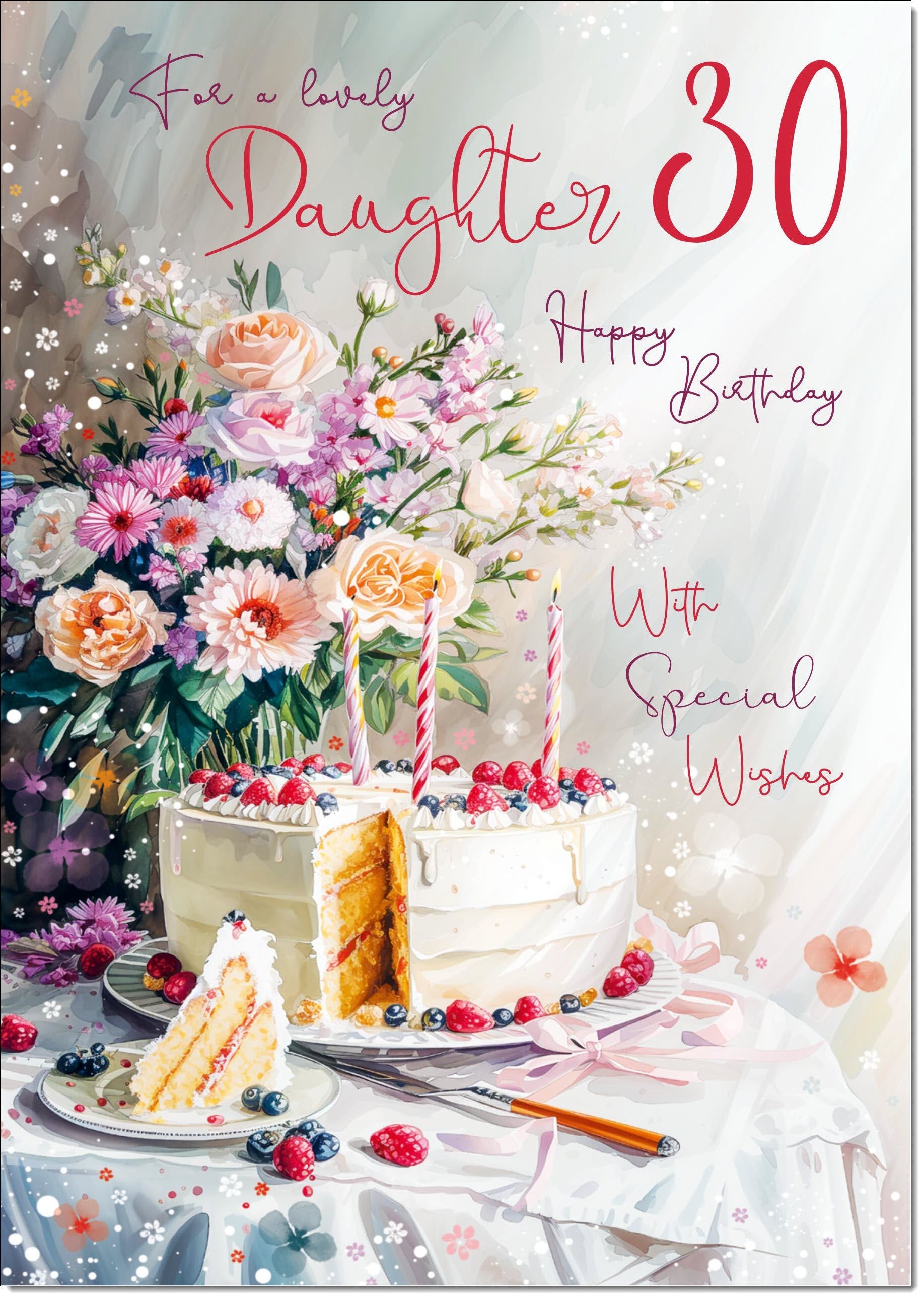 Daughter 30th Birthday Card Age 30 Birthday Cake and Flowers