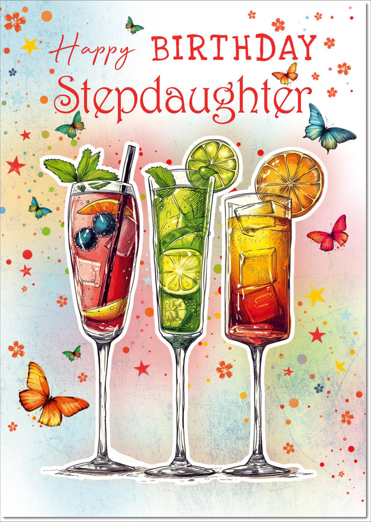 Daughter 40th Birthday Card Age 40 Cocktails and Butterflies