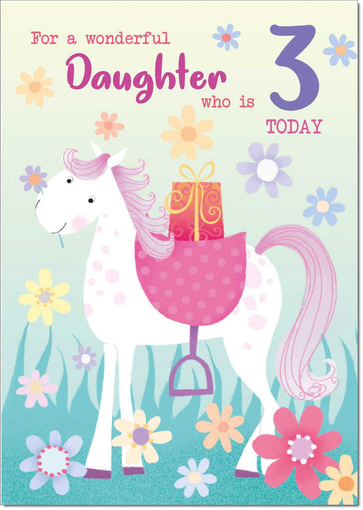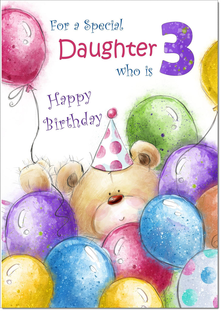 Daughter 3rd Birthday Card Age 3 Bunny Rabbit