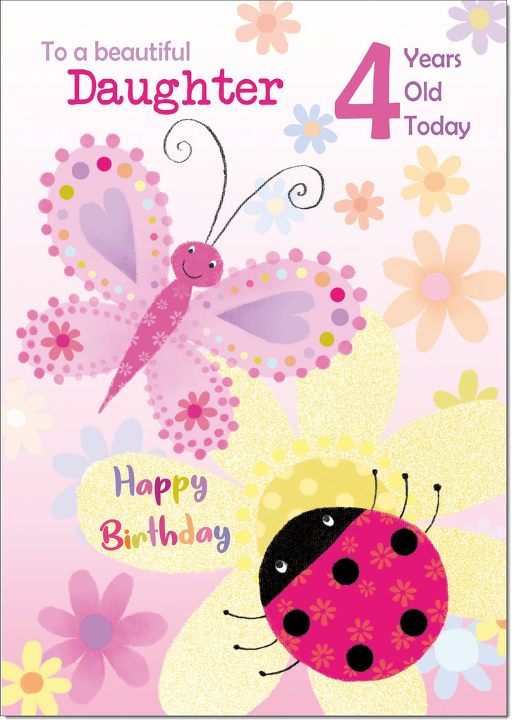 Daughter 4th Birthday Card Age 4 Ladybird and Butterfly