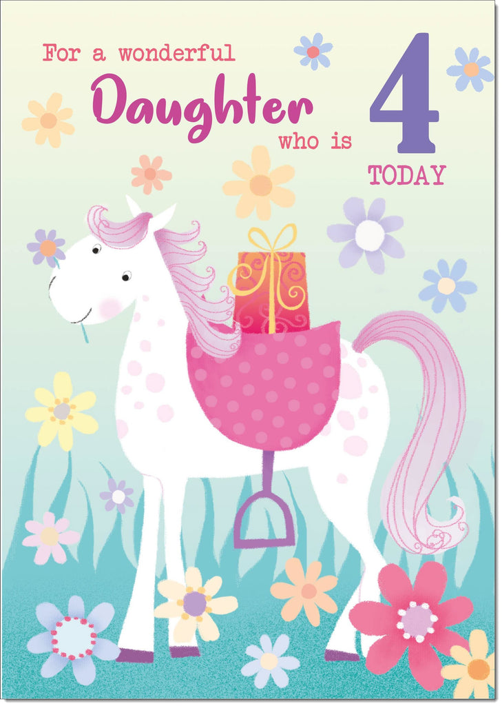 Daughter 4th Birthday Card Age 4 Stardust Unicorn