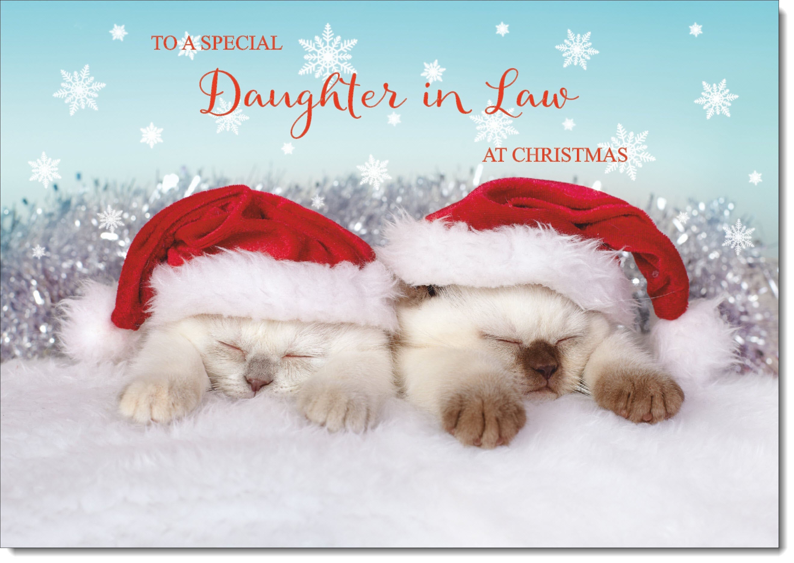 Daughter-in-Law Christmas Card Ragdoll Kittens in Santa Hats