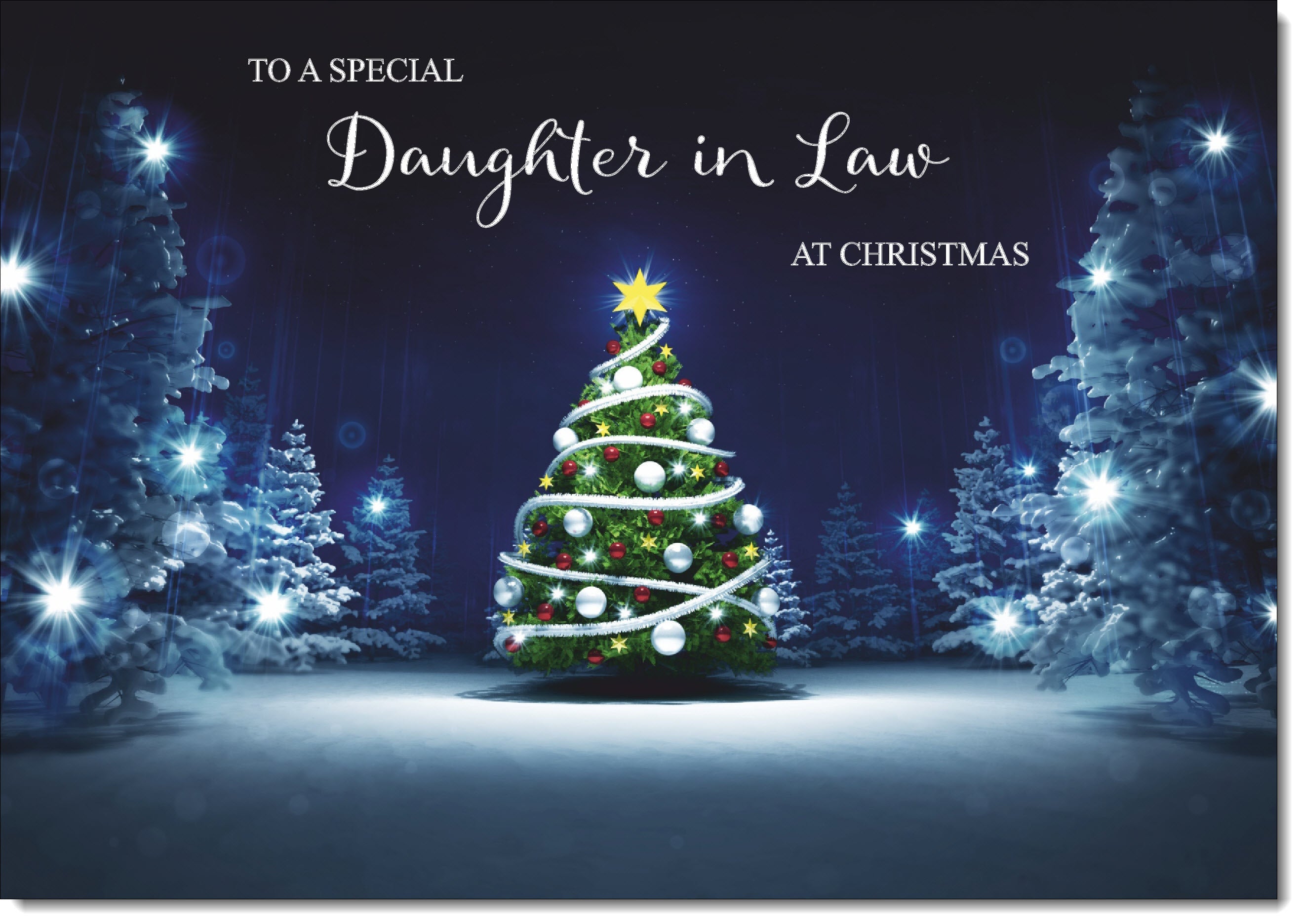 Daughter-in-Law Christmas Card Christmas Tree Lights in Dark Sky