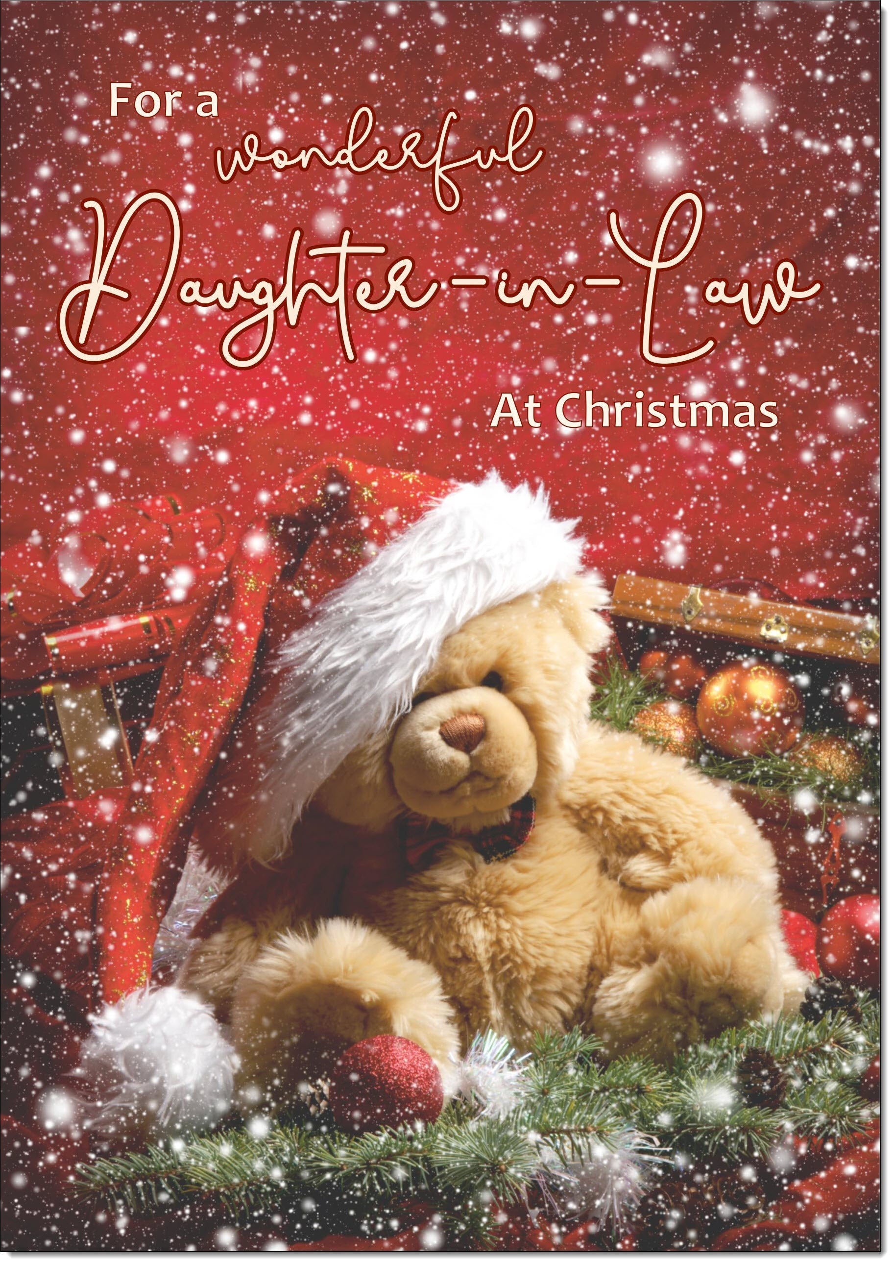 Daughter-in-Law Christmas Card Teddy Bear in Santa Hat