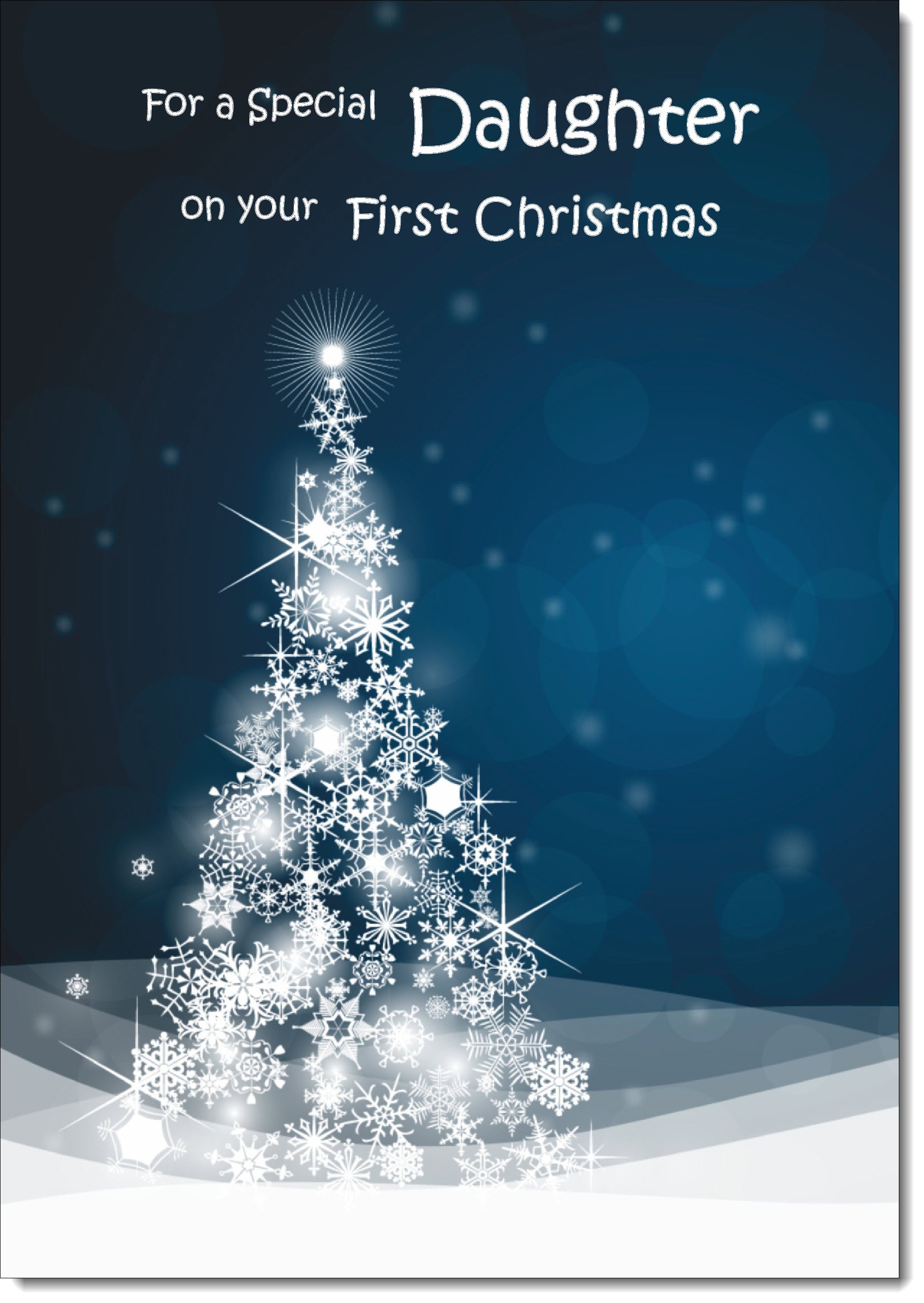 Daughter 1st Christmas Card Blue Abstract Christmas Tree