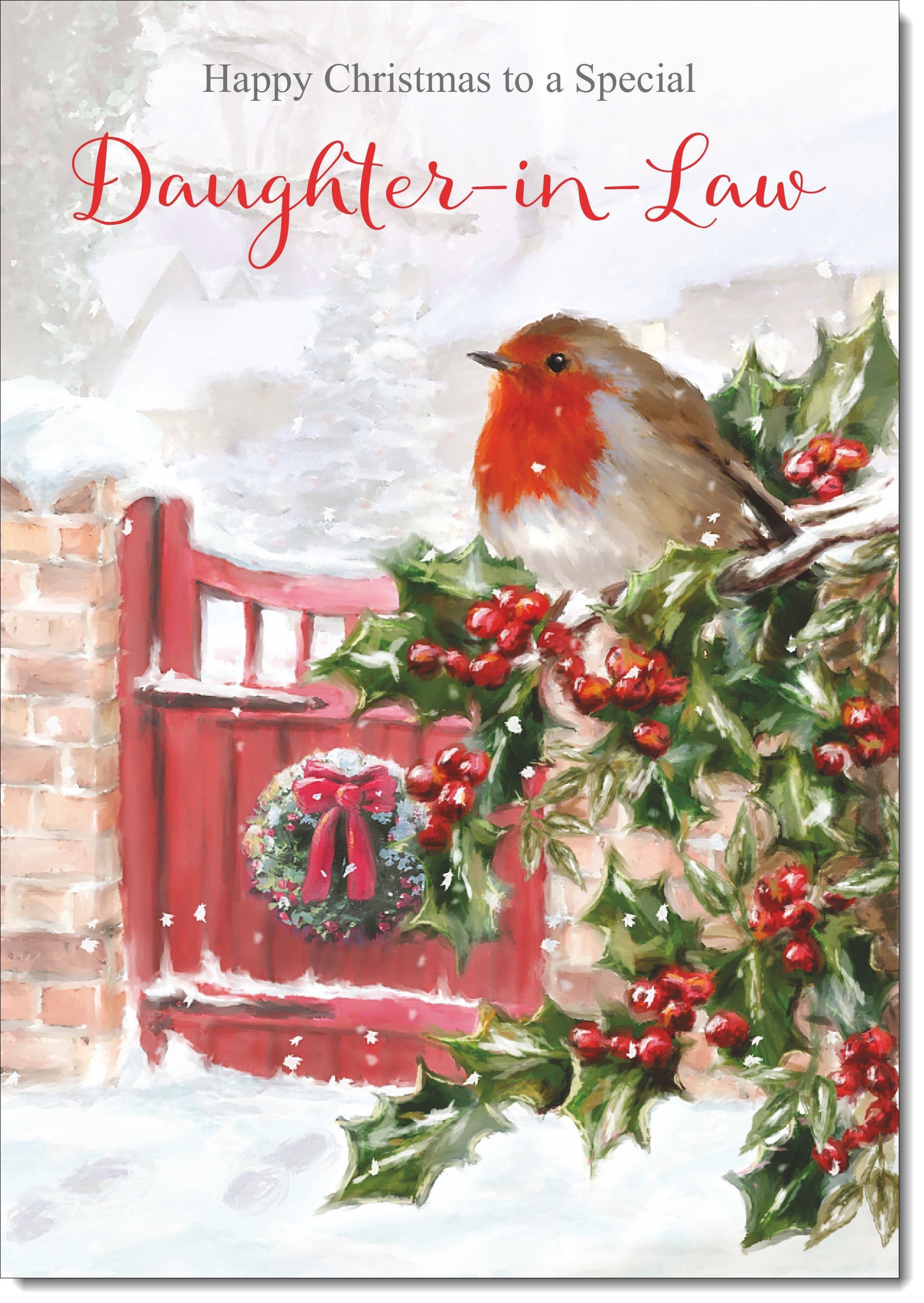 Daughter-in-Law Christmas Card Robin on Holly Tree