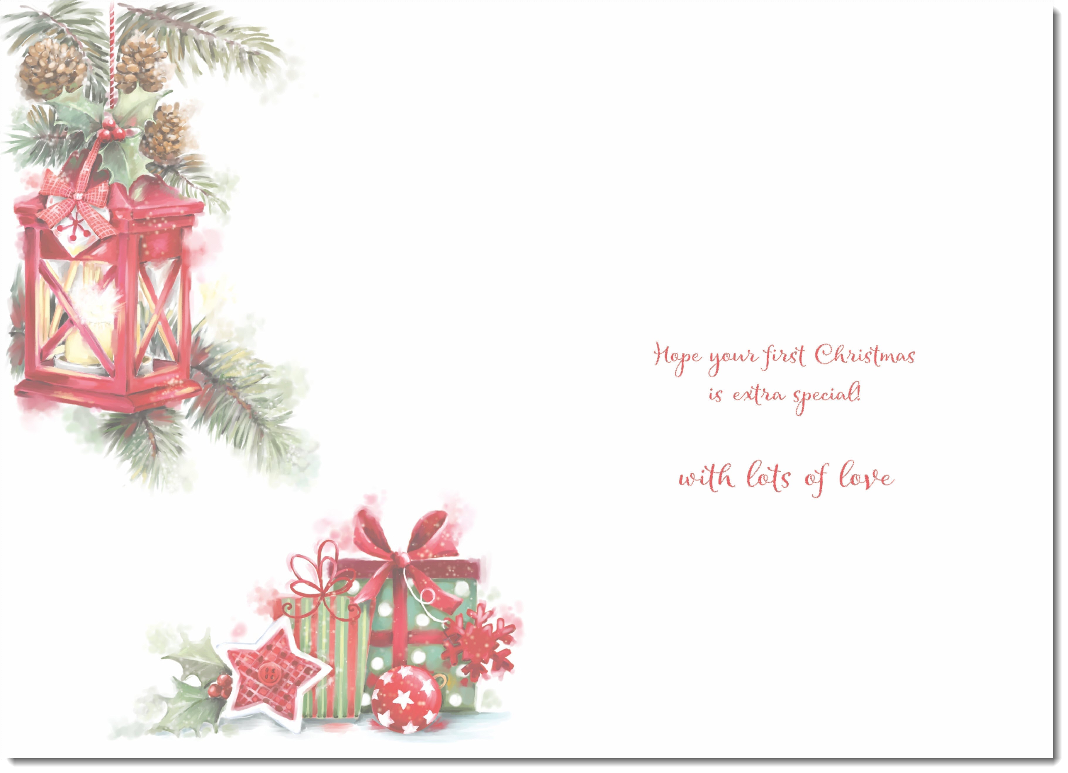 Daughter 1st Christmas Card Red Lantern & Christmas Presents