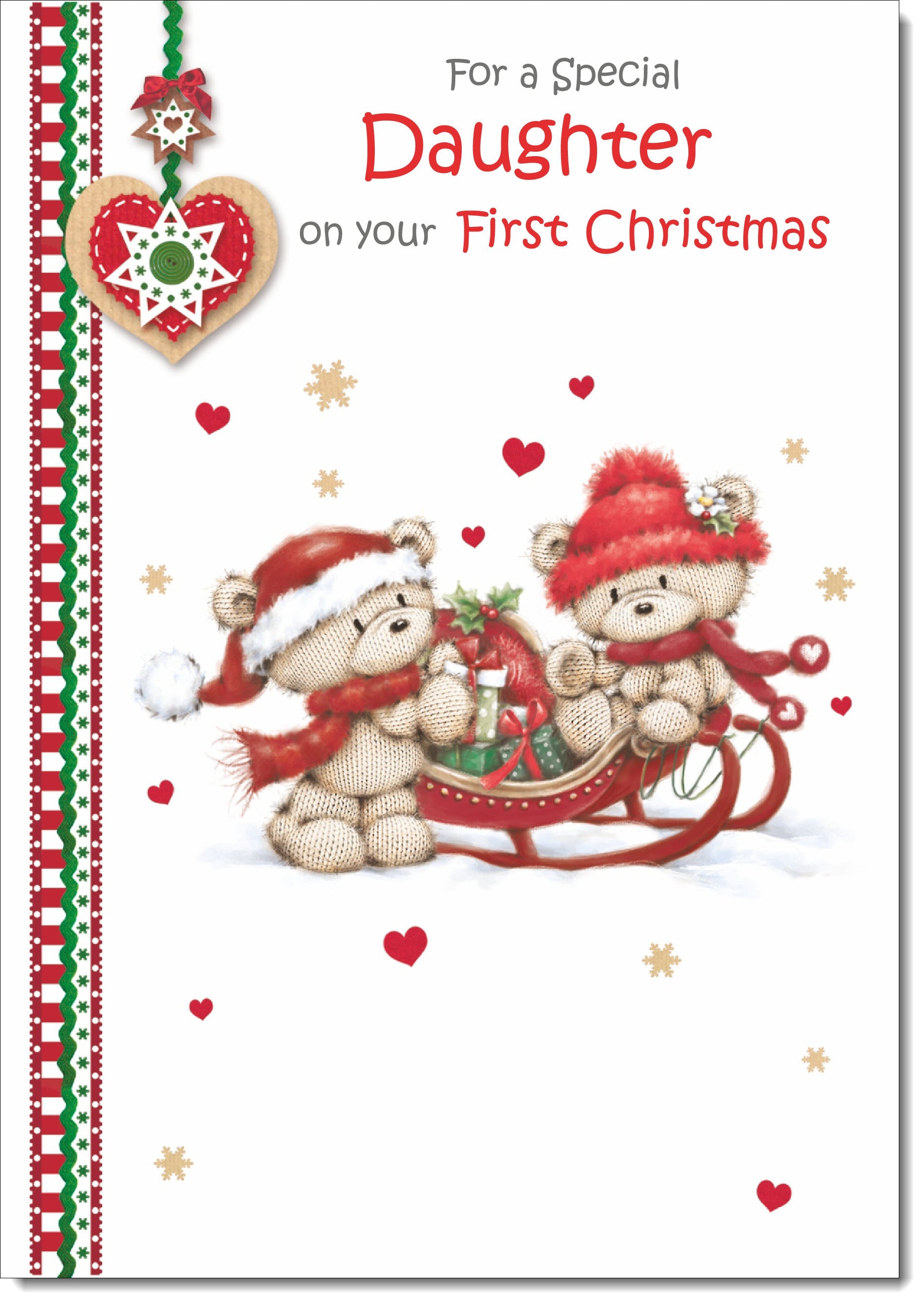 Daughter 1st Christmas Card Two Cute Bears on Sled