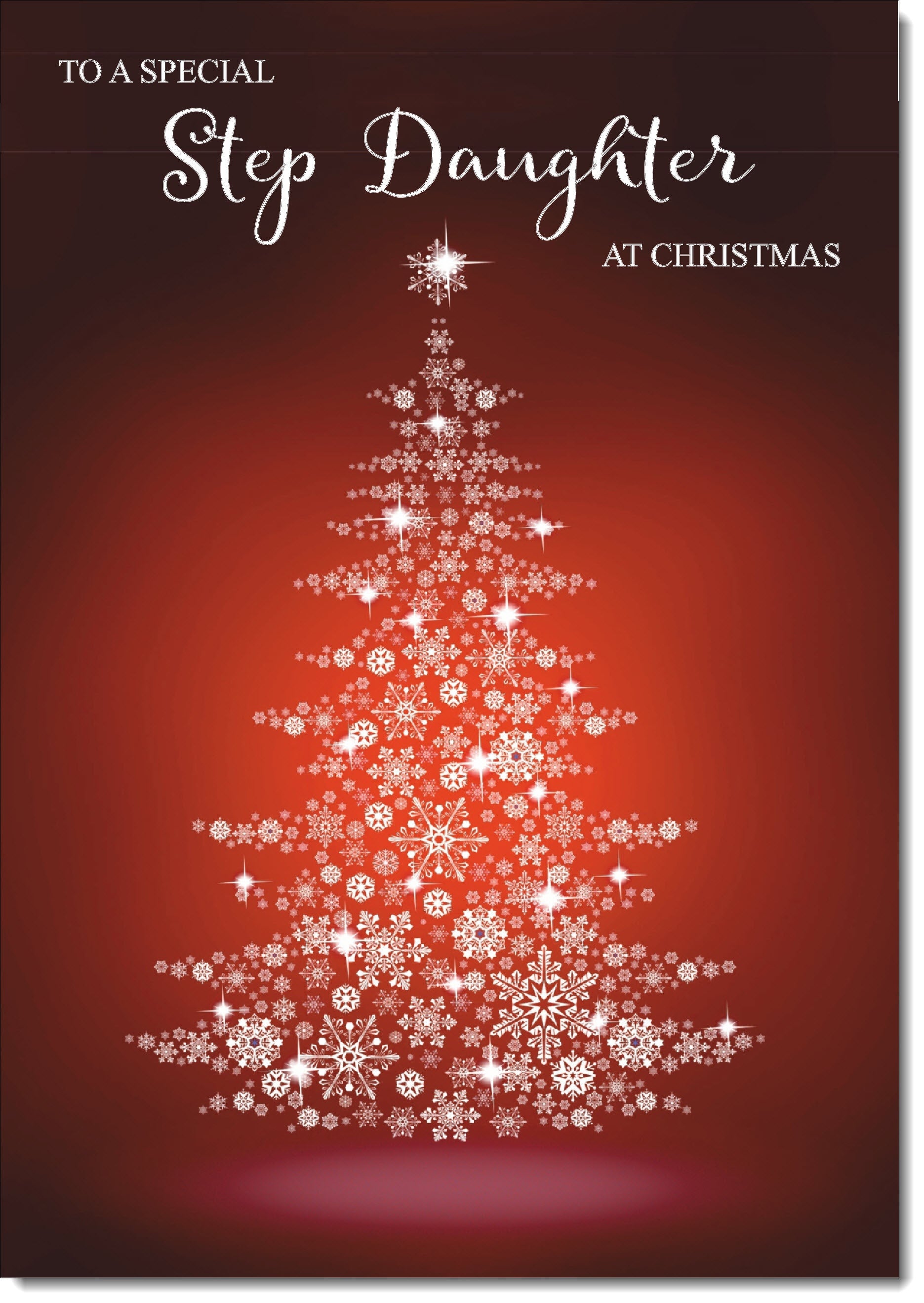 Stepdaughter Christmas Card Red Snowflake Christmas Tree