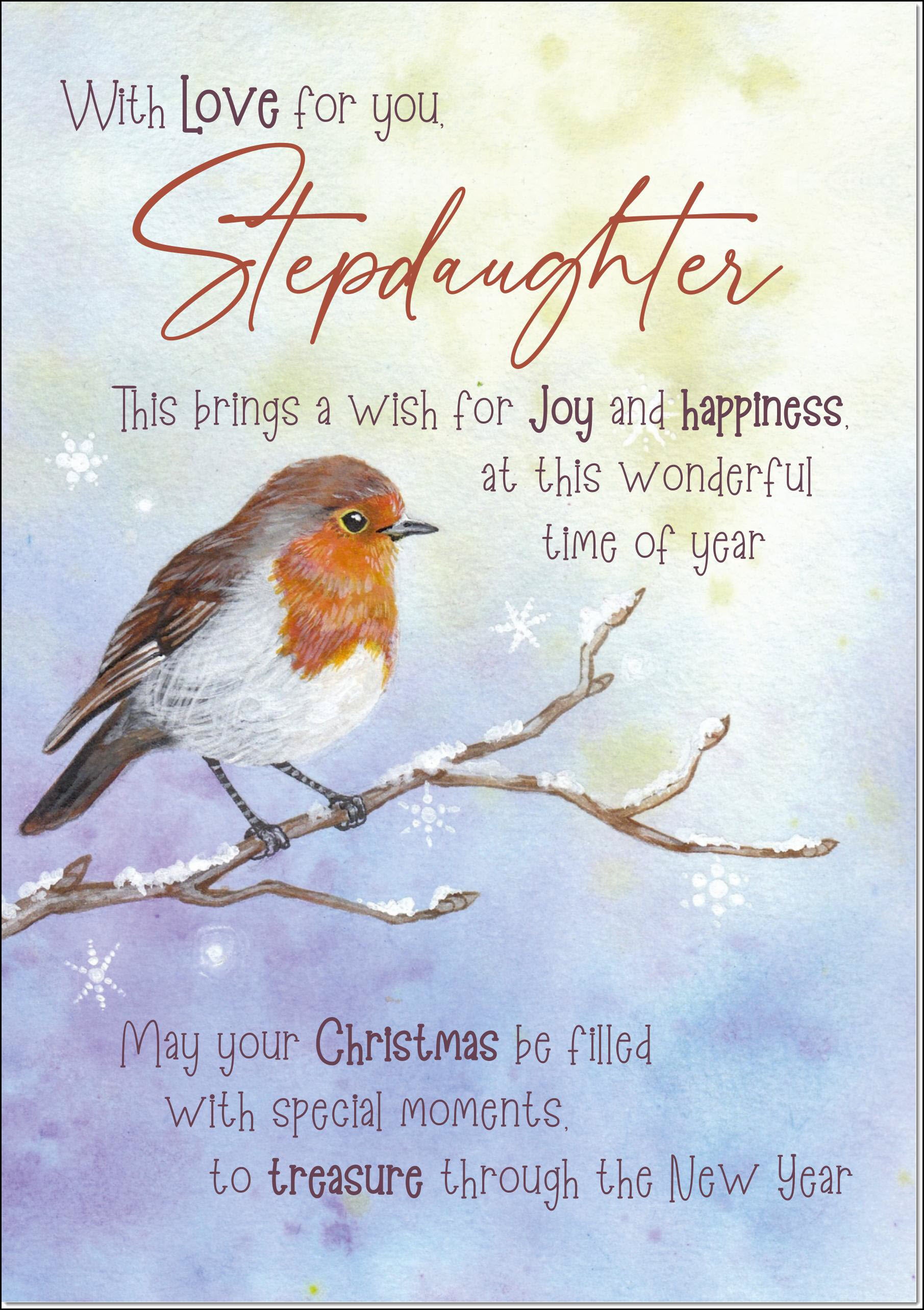 Stepdaughter Christmas Card Watercolour Robin In The Frost