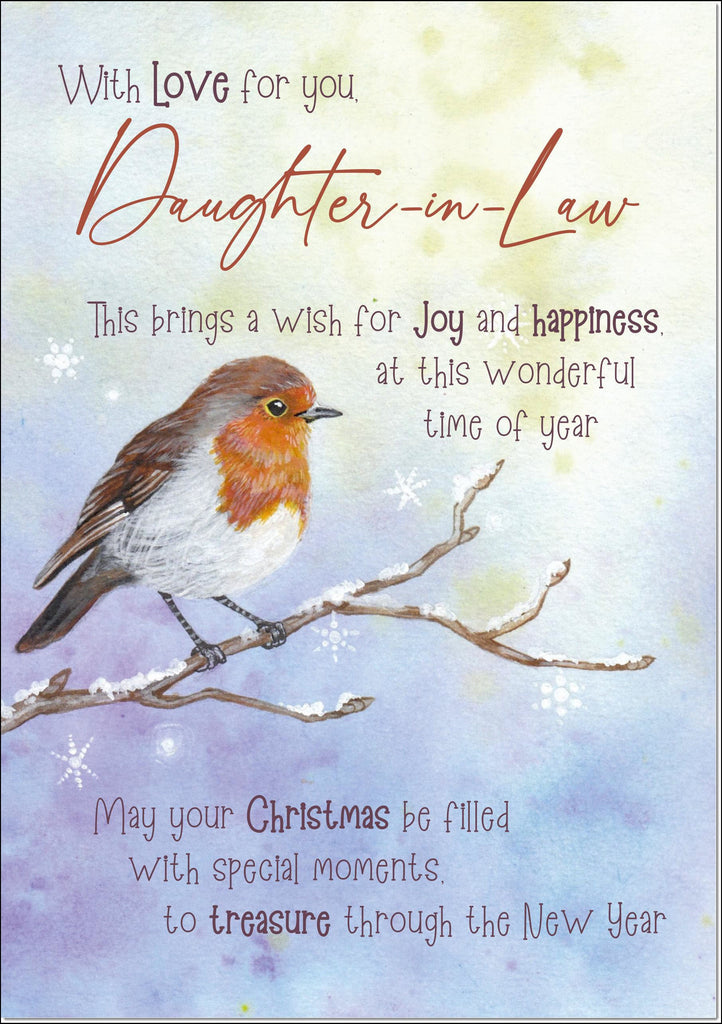 Daughter-in-Law Christmas Card Watercolour Robin In The Frost