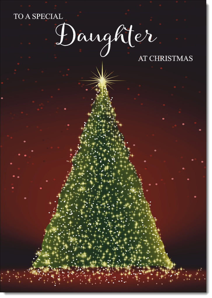 Daughter Christmas Card Christmas Tree Lights in Dark Sky