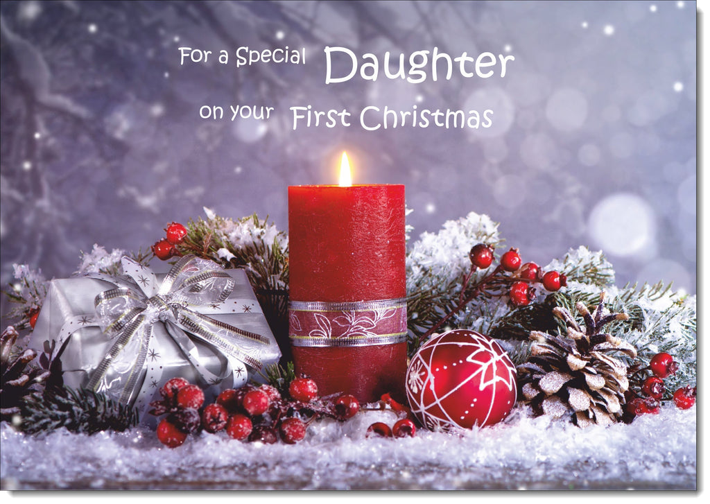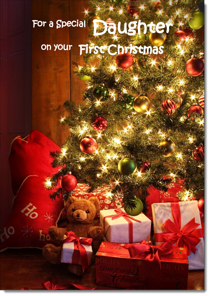 Daughter 1st Christmas Card Teddy by Christmas Tree