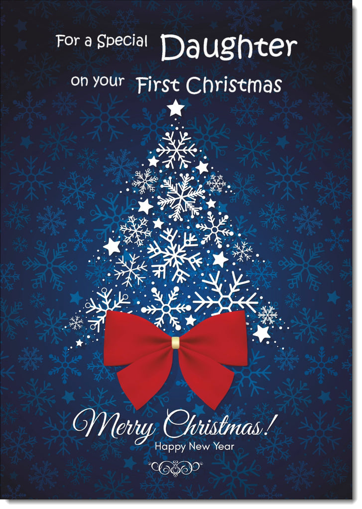 Daughter 1st Christmas Card Blue Abstract Christmas Tree