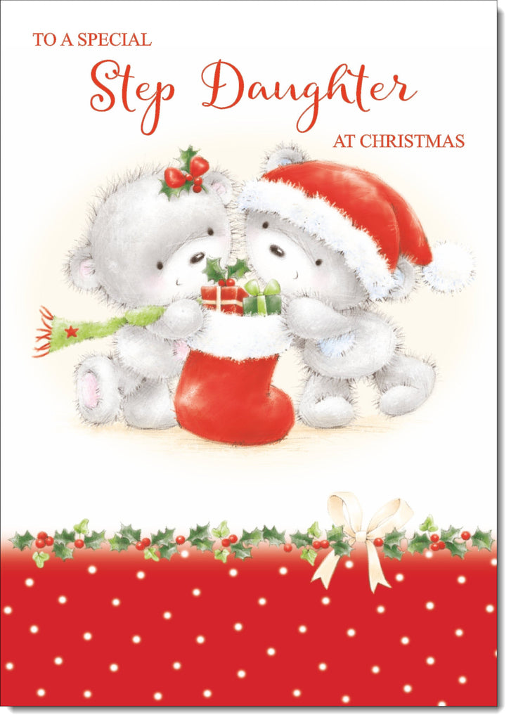 Stepdaughter Christmas Card Cute Bears with Stocking