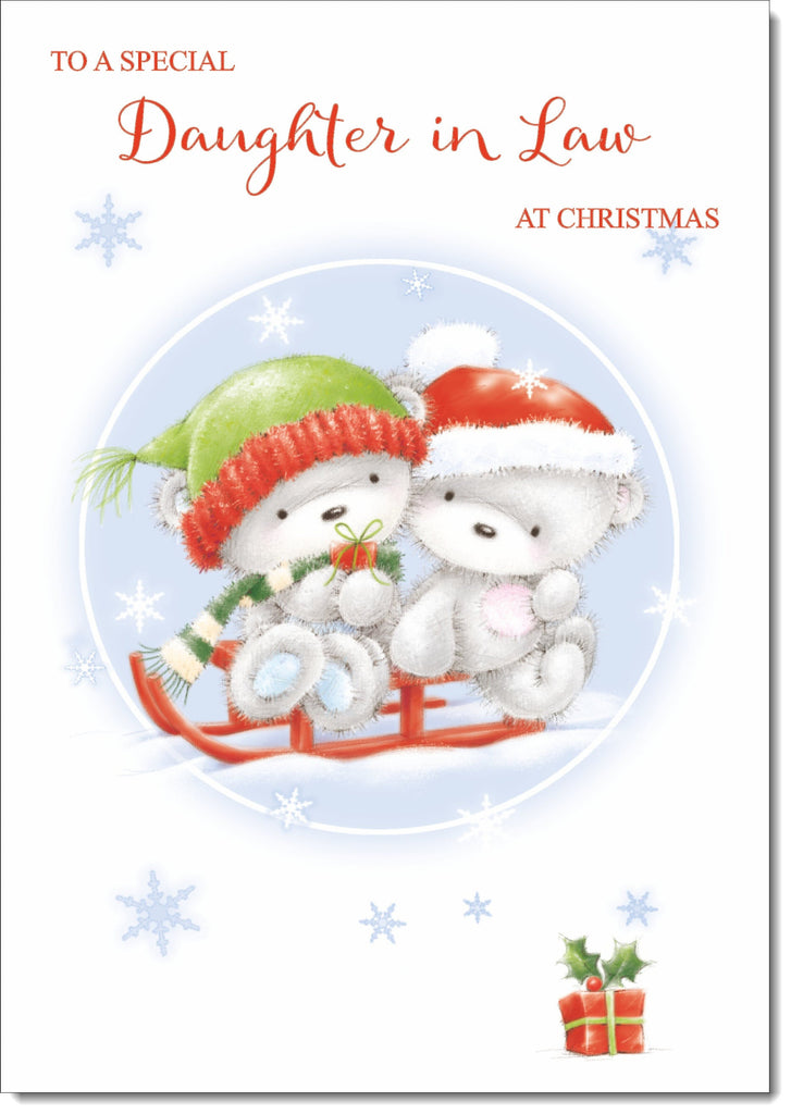 Daughter-in-Law Christmas Card Cute Bears on Sled