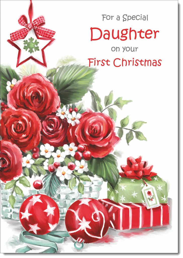 Stepdaughter Christmas Card Red Roses Christmas Arrangement