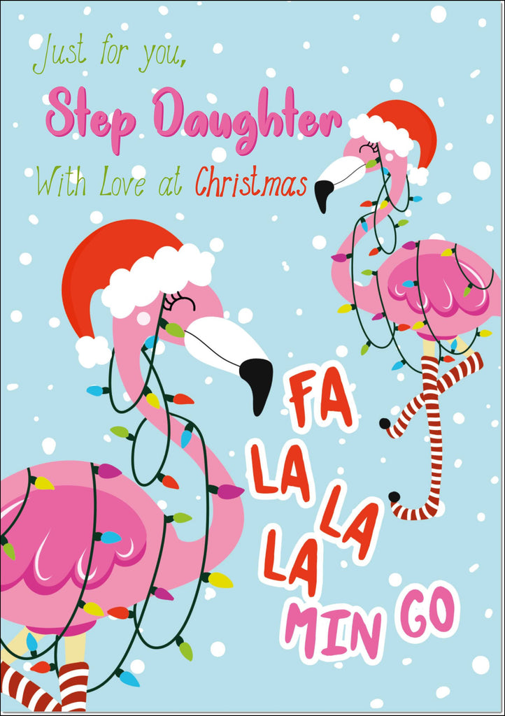 Stepdaughter Christmas Card Flamingo Christmas Tree Lights
