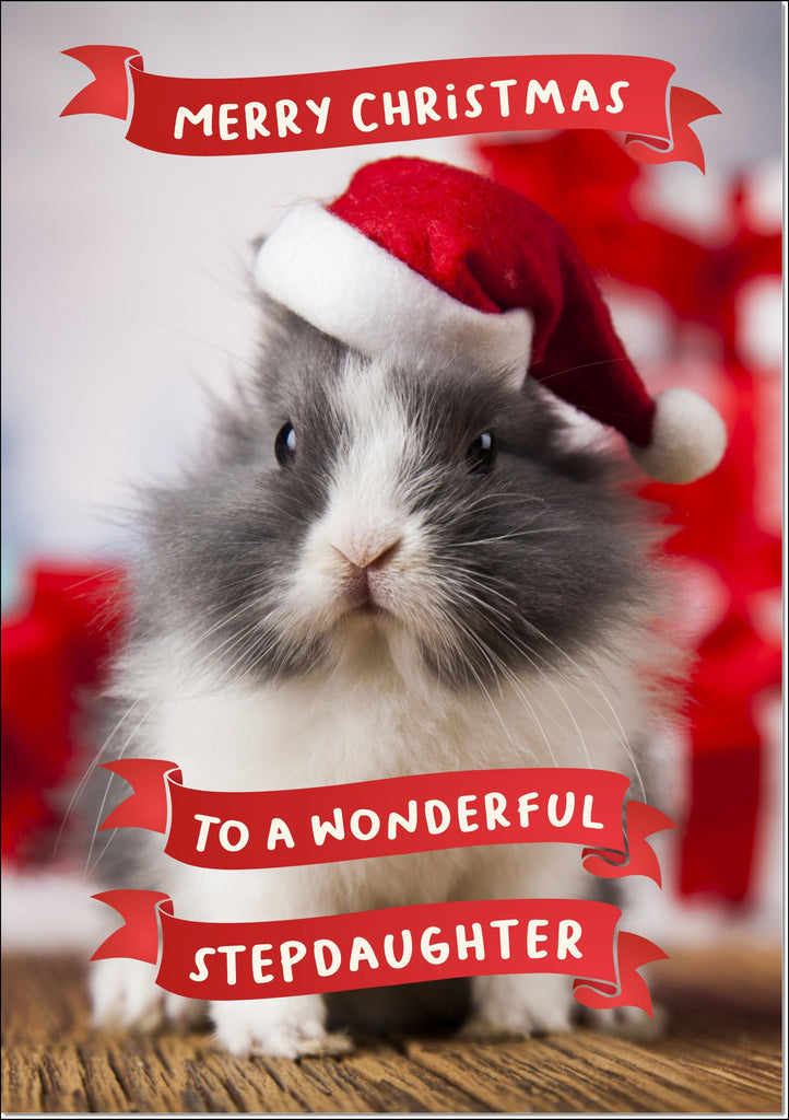 Stepdaughter Christmas Card Cute Santa Paws Rabbit Pet Christmas Hat