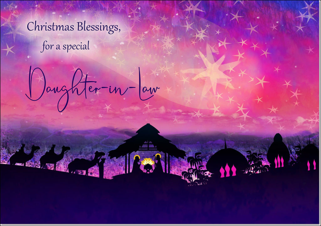 Daughter-in-Law Christmas Card Nativity Scene Evening Watercolour