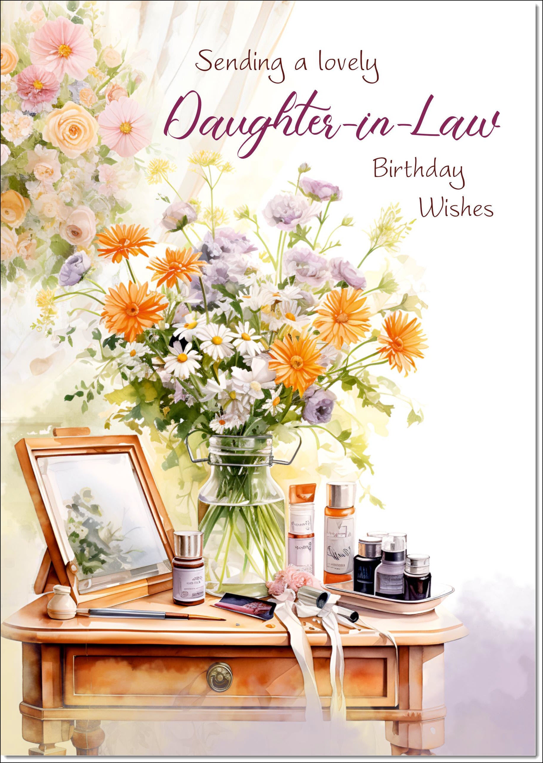 Daughter-in-Law Birthday Card Dressing Table Bouquet