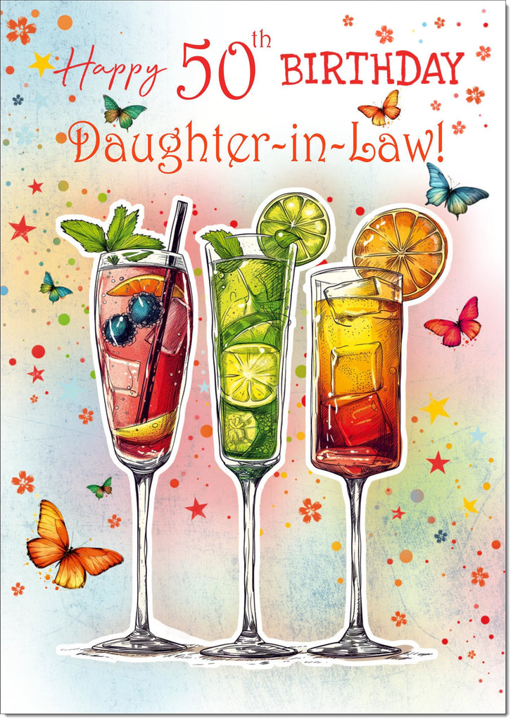 Daughter-in-Law 50th Birthday Card Age 50 Cocktails and Butterflies
