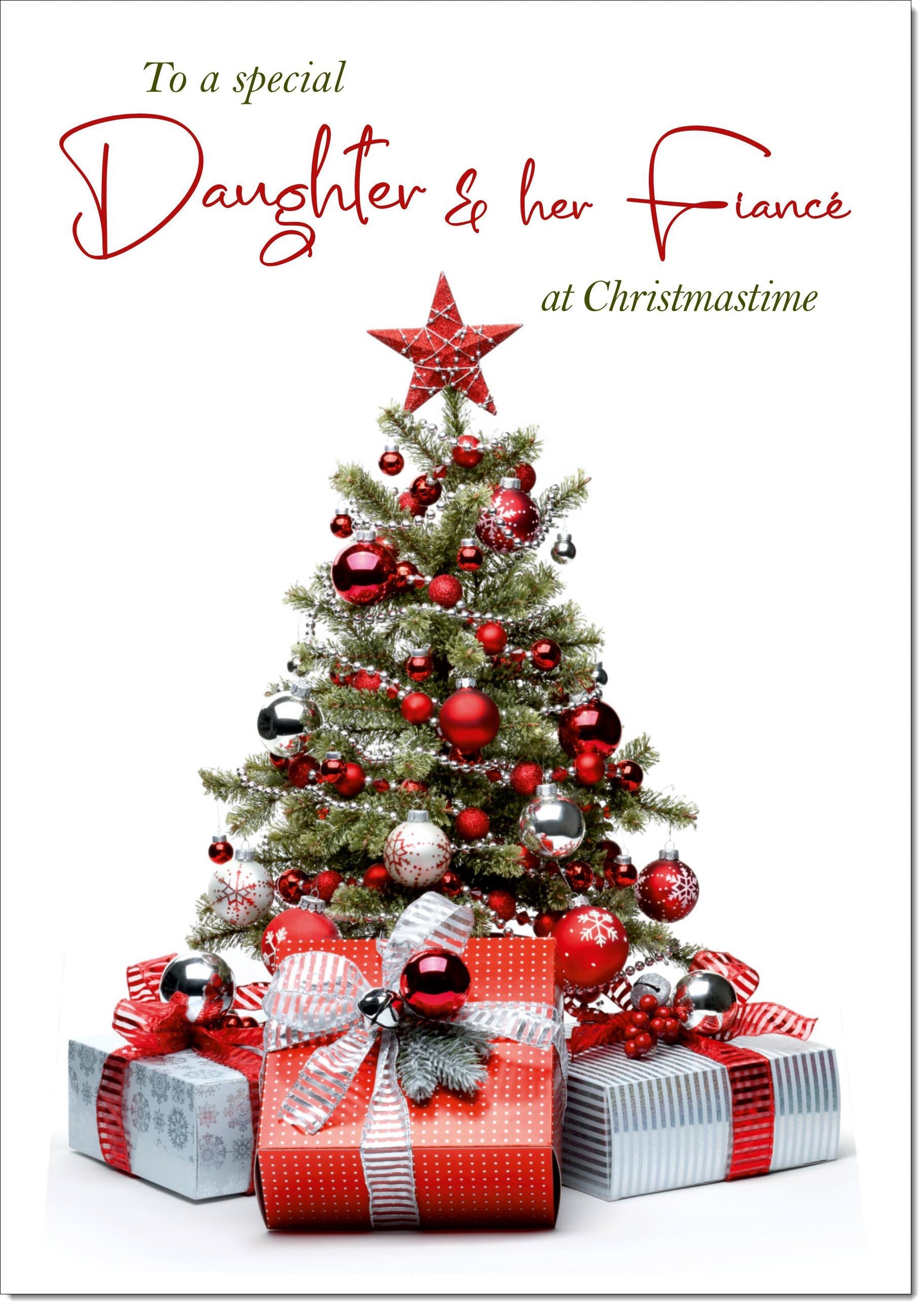 Daughter & Fiance Christmas Card Christmas Tree and Parcels