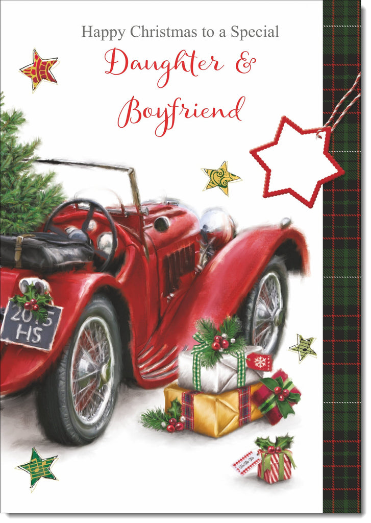 Daughter & Boyfriend Christmas Card Red Vintage Car