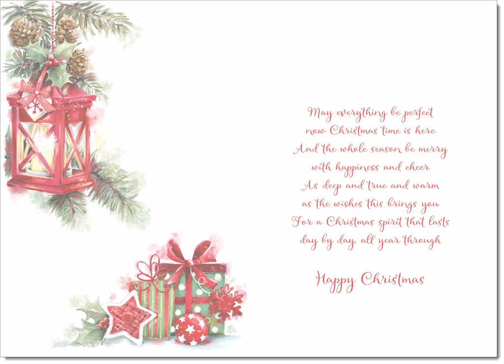 Daughter & Fiance Christmas Card Red Lantern & Christmas Presents
