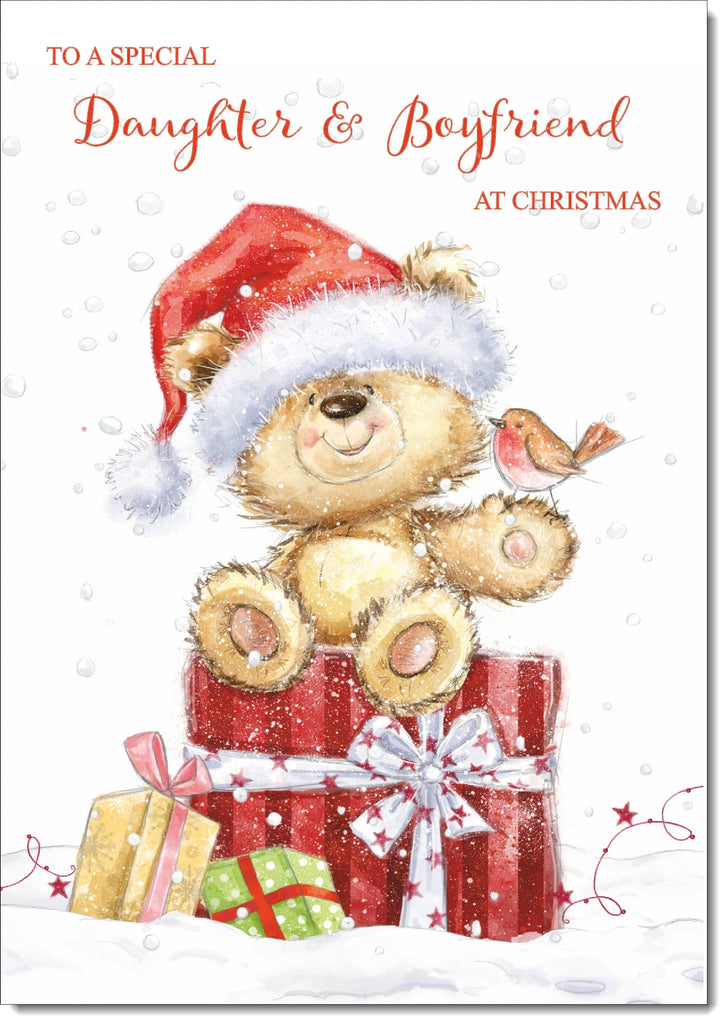 Daughter & Boyfriend Christmas Card Teddy Bear in Santa Hat