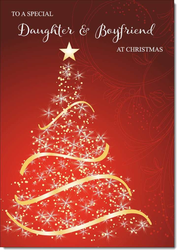Daughter & Boyfriend Christmas Card Red Christmas Tree