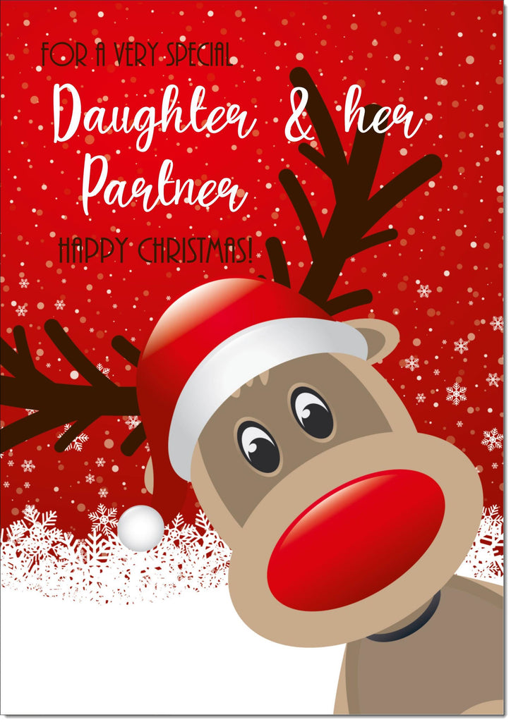 Daughter & Partner Christmas Card Red Snowflake Christmas Tree