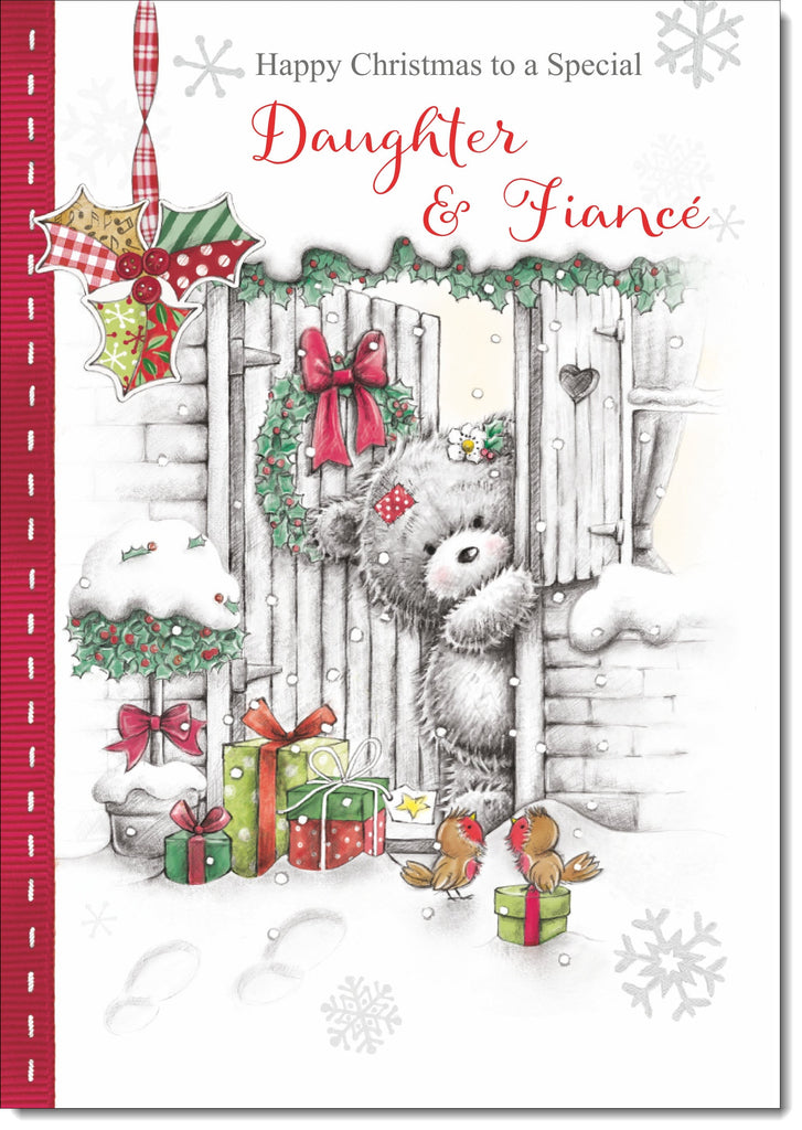 Daughter & Partner Christmas Card Cute Bear in Christmas Parcel