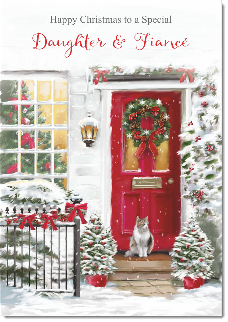 Daughter & Fiance Christmas Card Cat by Snowy Red Door