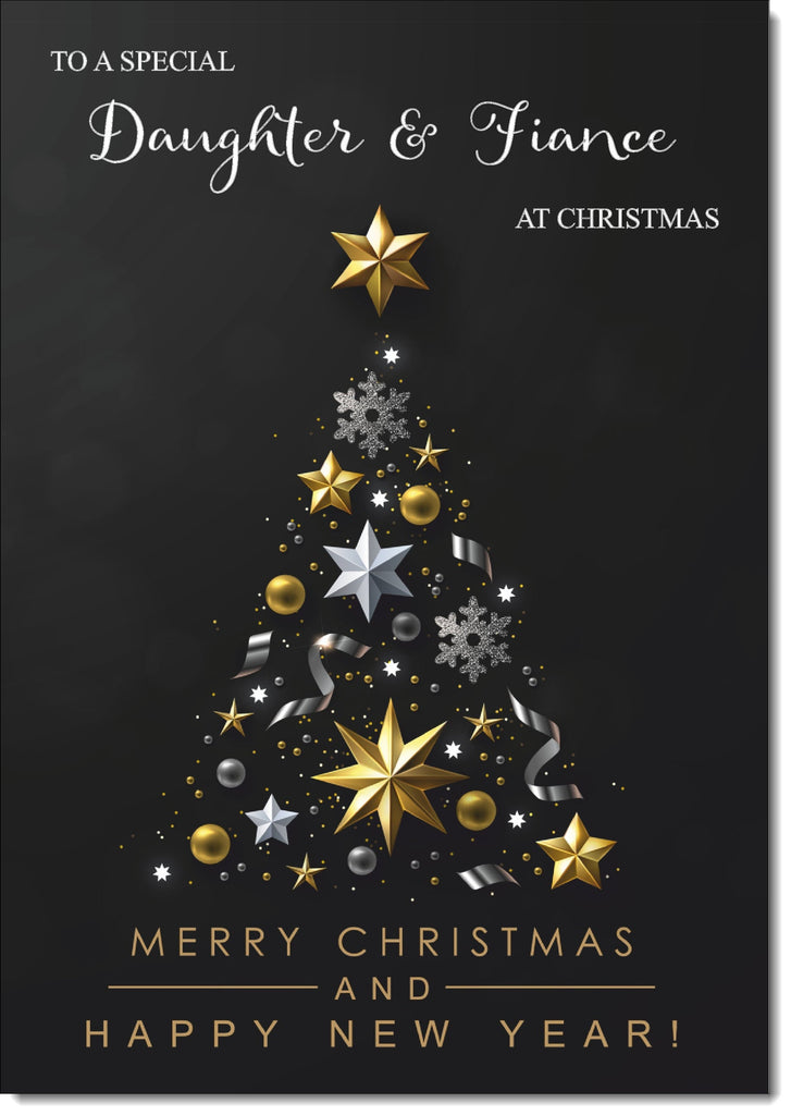 Daughter & Fiance Christmas Card Black Abstract Christmas Tree