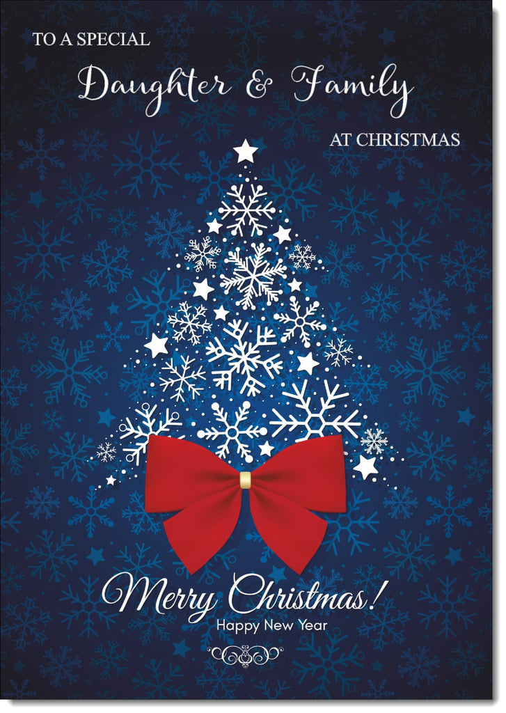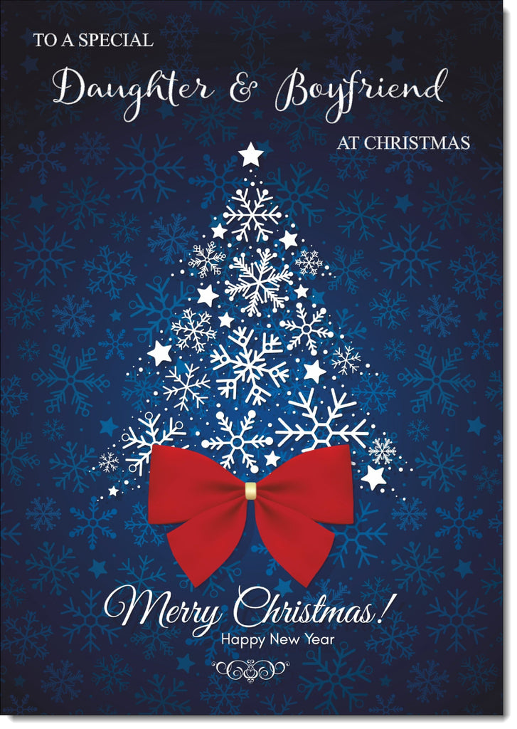 Daughter & Partner Christmas Card Red Snowflake Christmas Tree