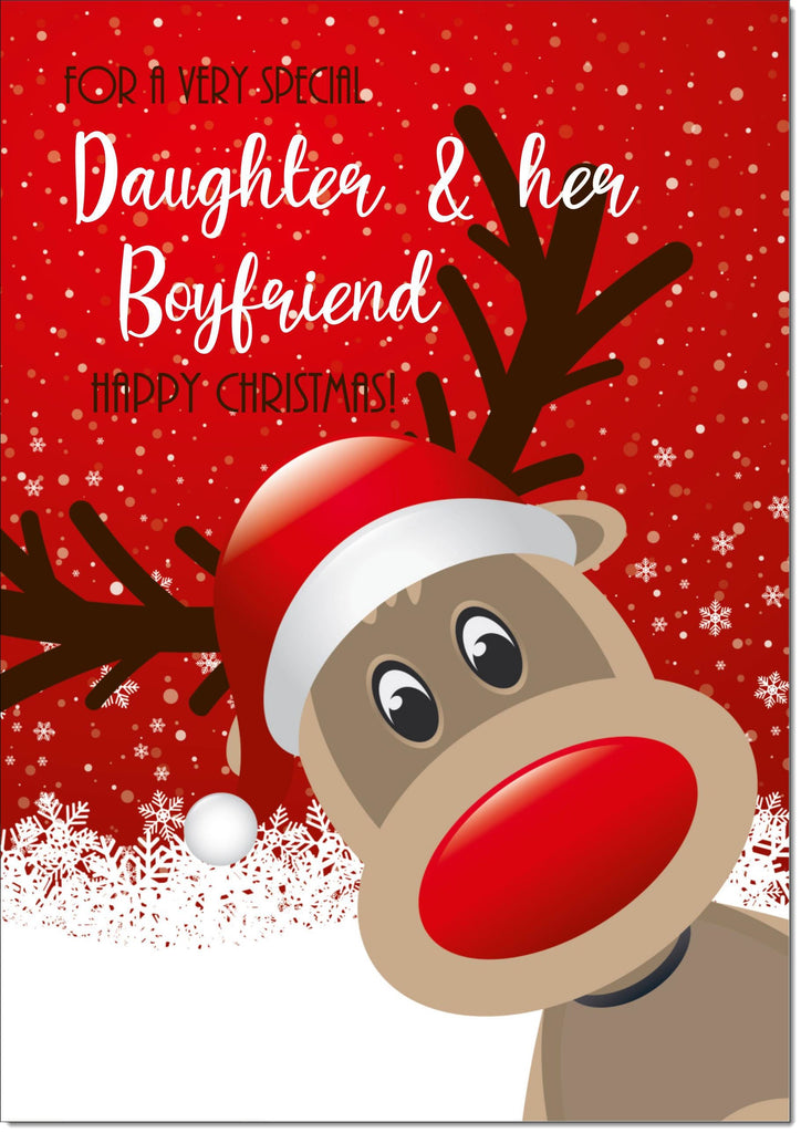 Daughter & Boyfriend Christmas Card Rudolph in Snow