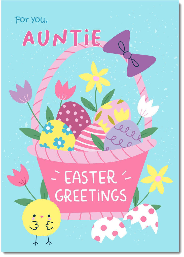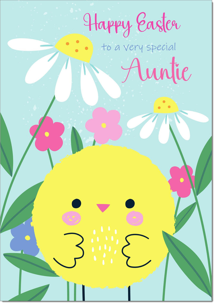 Auntie Easter Card Yellow Chick and Spring Flowers