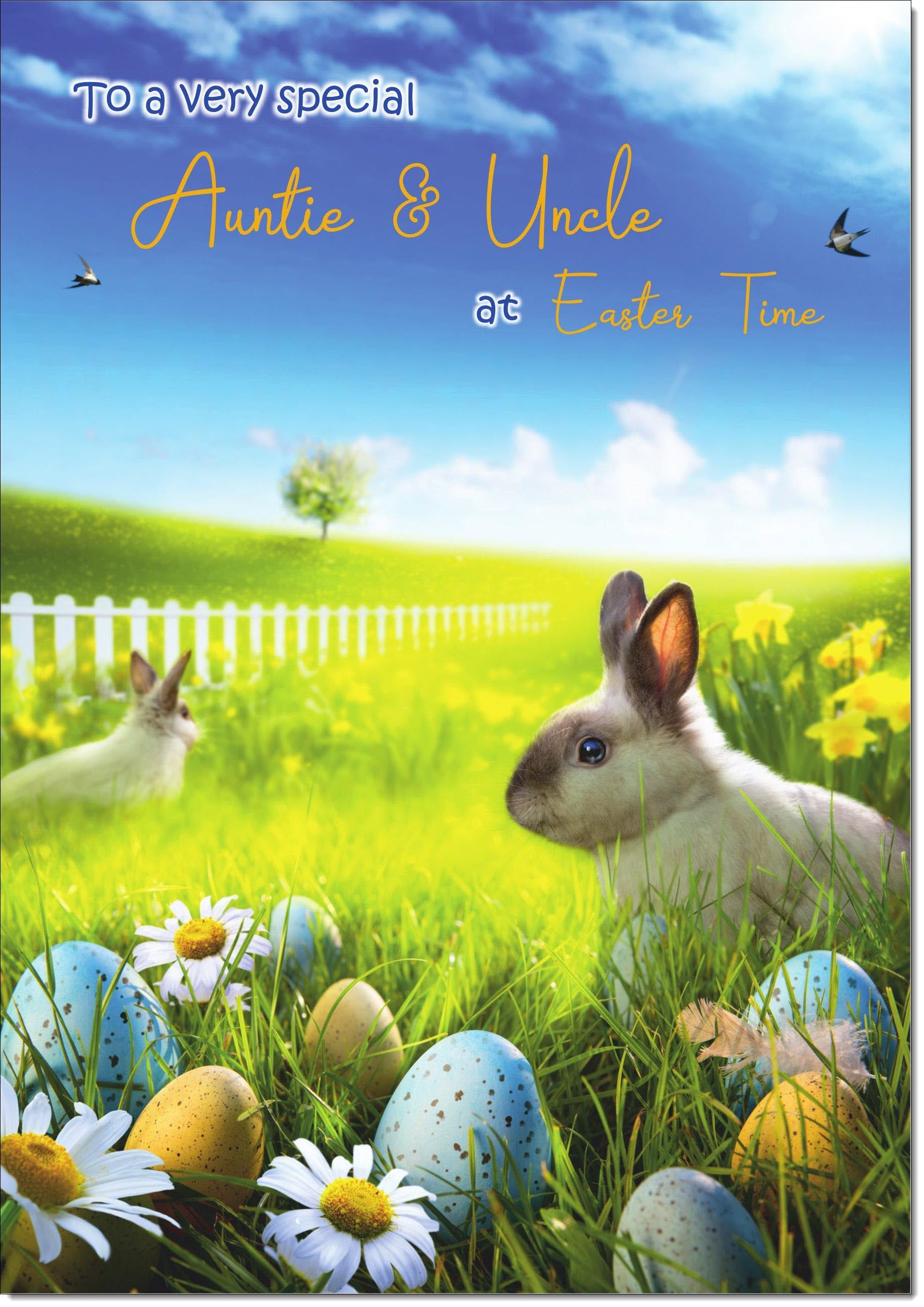 Auntie & Uncle Easter Card Bunnies in Field