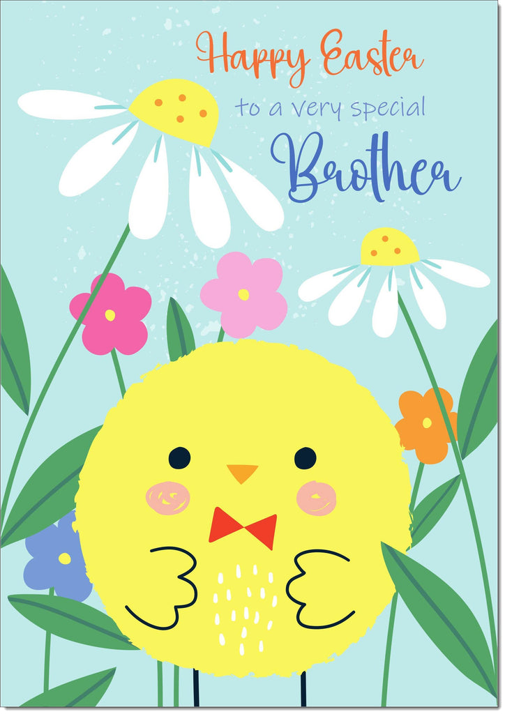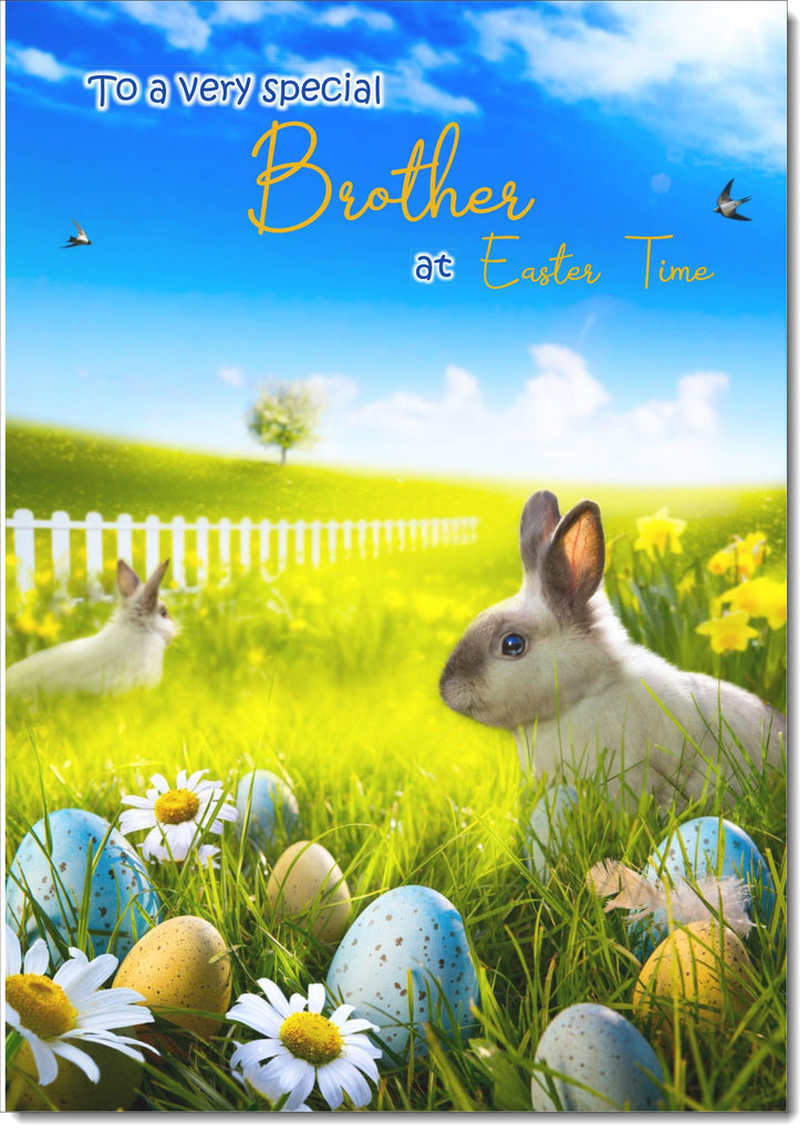 Brother Easter Card Vase of Daffodils with Bunnies and Eggs