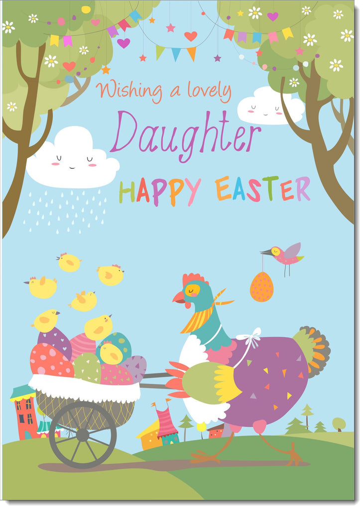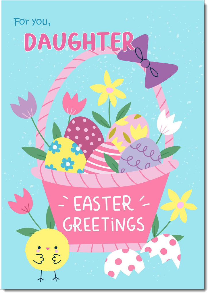 Daughter Easter Card Yellow Chick and Spring Flowers