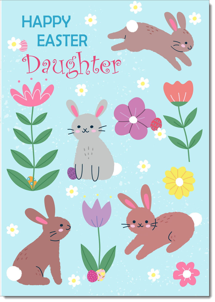 Daughter Easter Card Vase of Daffodils with Bunnies and Eggs