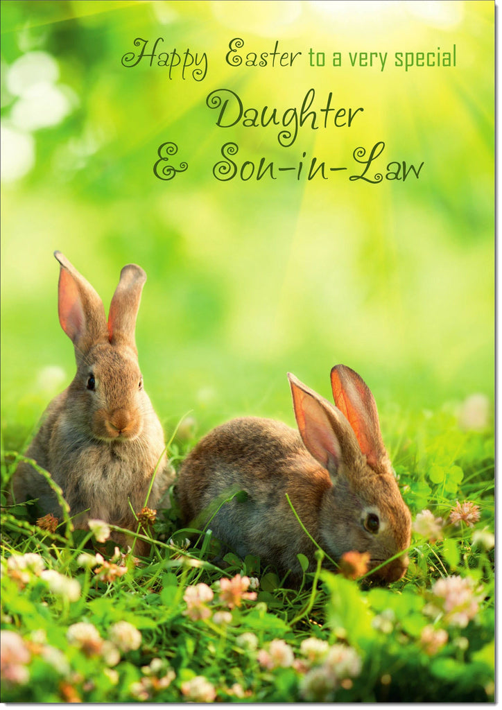 Daughter & Son-in-Law Easter Card Bunnies in Field