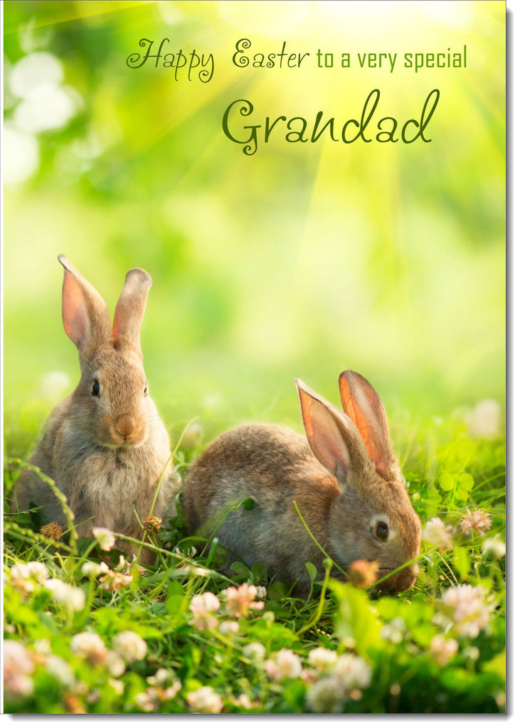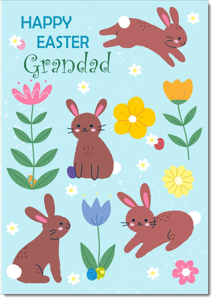 Grandad Easter Card Vase of Daffodils with Bunnies and Eggs