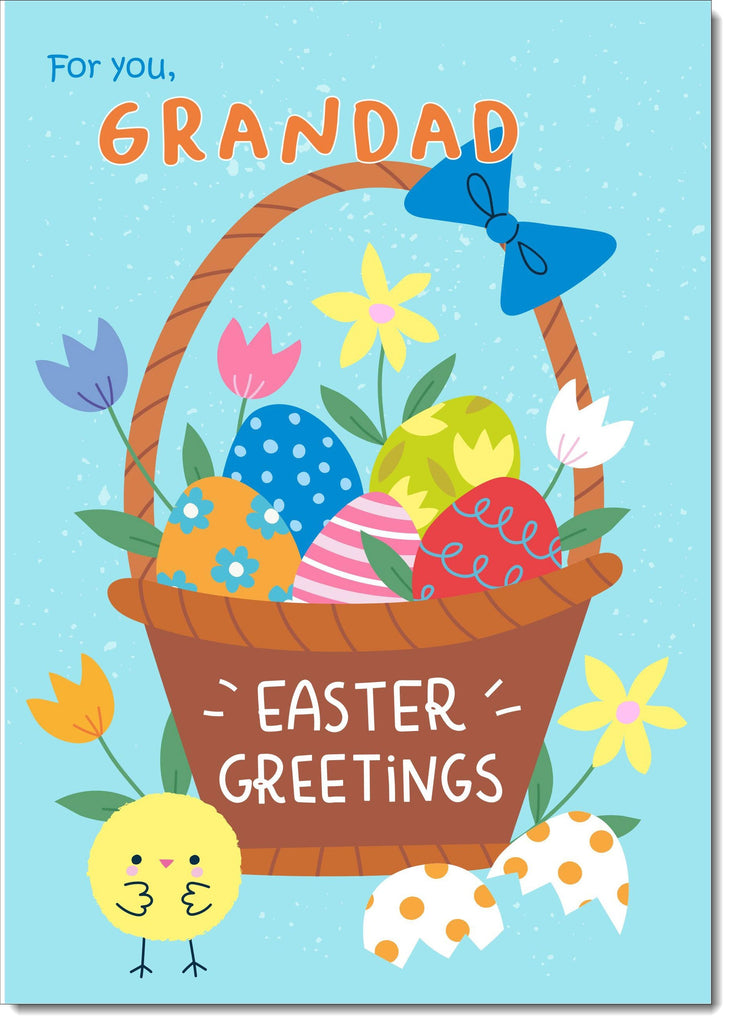 Grandad Easter Card Yellow Chick and Spring Flowers